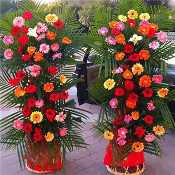 精选各色扶郎花,百合花、散尾葵、绿叶搭配。